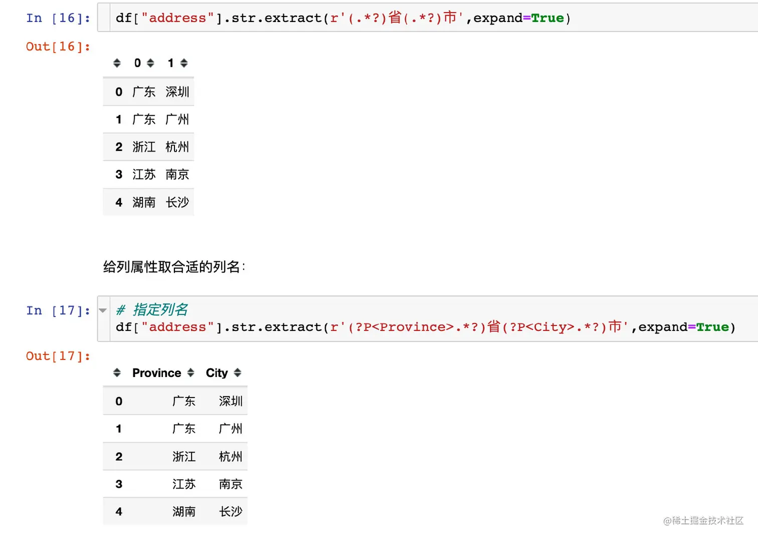同时提取省份+城市,还可以指定列名信息: