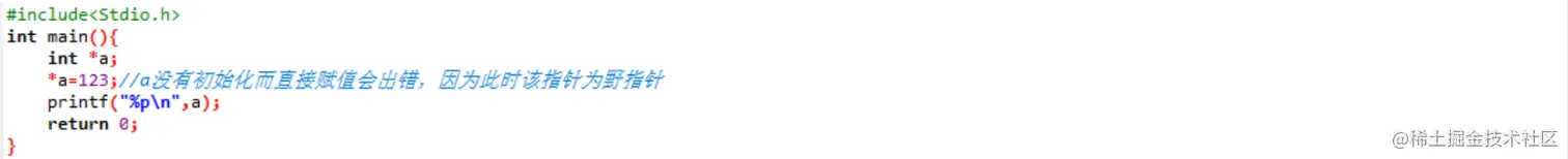 - 举例:a没有初始化而直接赋值会出错,因为此时该指针为野指针 (此时会随机寻找地址进行赋值,非常危险)