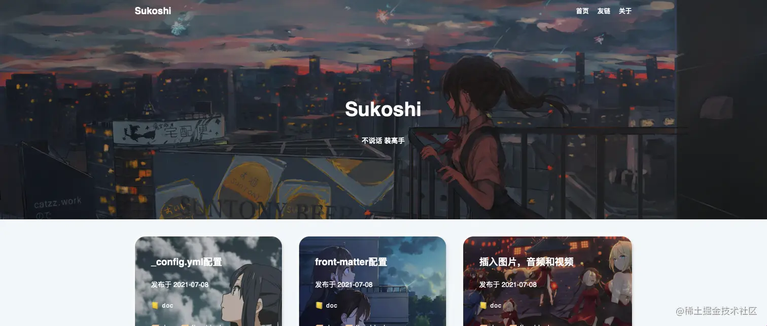 恭喜你处理完这些后,你就可以用自己的链接看到部署完成后的博客了。 接下来就是你自由发挥的时间啦。有帮助到你的话,那就点个赞👍再走吧!