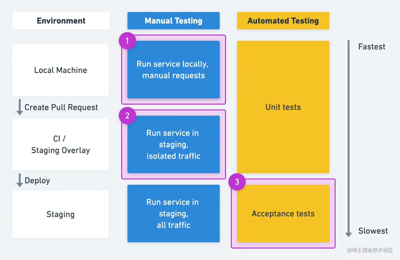 - 自动端到端测试: 尽管我们过度依赖于这种测试,但如果没有自动化的端到端测试提供的信心,我们无法继续每天交付数百次变更。我们将保留一小部分有价值的测试作为验收测试,在部署到生产环境时运行。