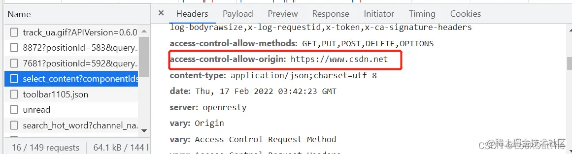 但并非所有情况都简单设置即可,如果需要浏览器在发起请求时携带凭证信息,则不允许设置为*。如果设置了具体的站点信息,则响应头中的Vary字段还需要携带Origin属性,这将告诉客户端:服务器对不同的源站返回不同的内容,然浏览器区分对待。