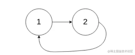 第二个指针还差2步就可以到达环入口,但是第二个指针每次比第一个指针多走1步,因此第一个指针再走2步,两个指针就会相遇。