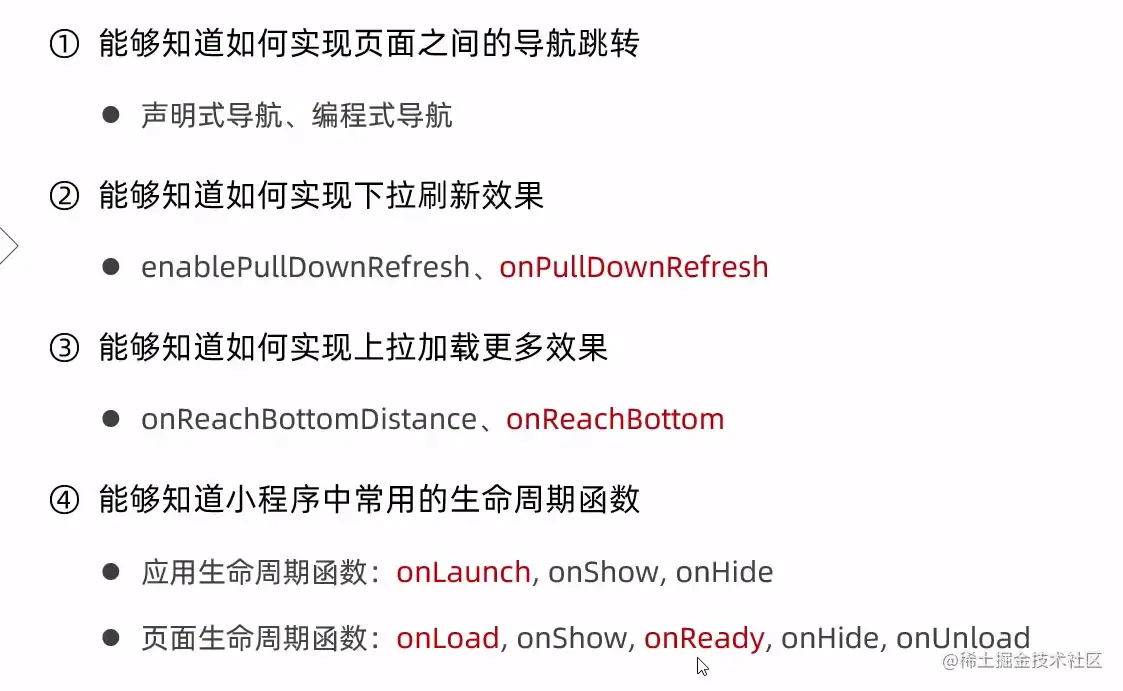 - 特指小程序从启动 -> 运行 -> 销毁期间依次调用的那些函数