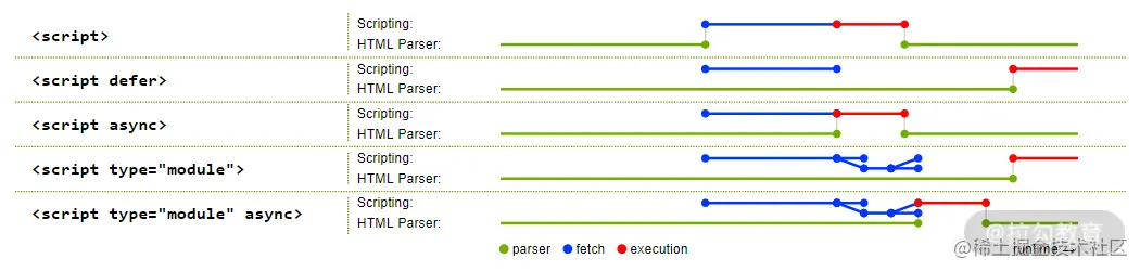 为了减少这些时间损耗,可以借助 script 标签的 3 个属性来实现。