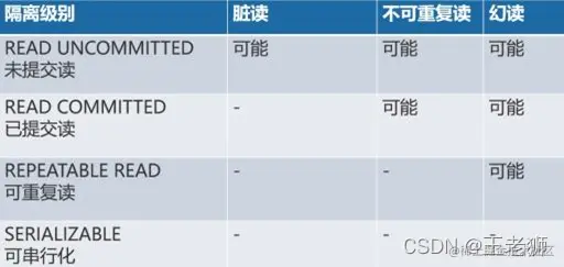 READ COMMITTED 隔离级别下,可能发生不可重复读和幻读问题,但是不可 以发生脏读问题。