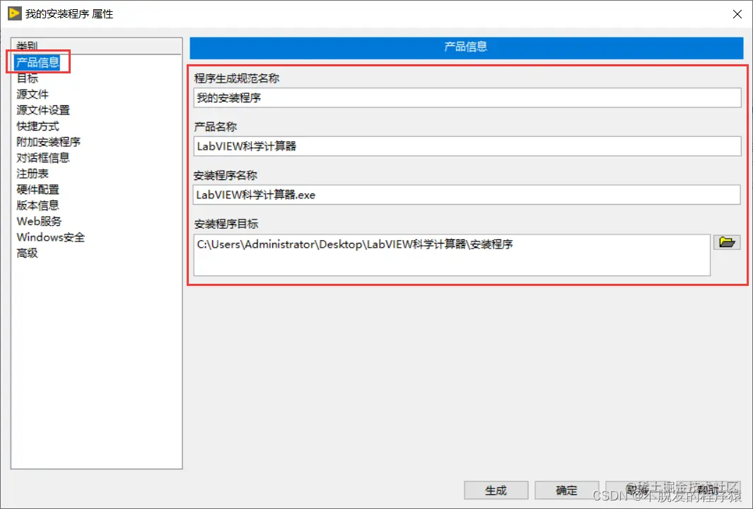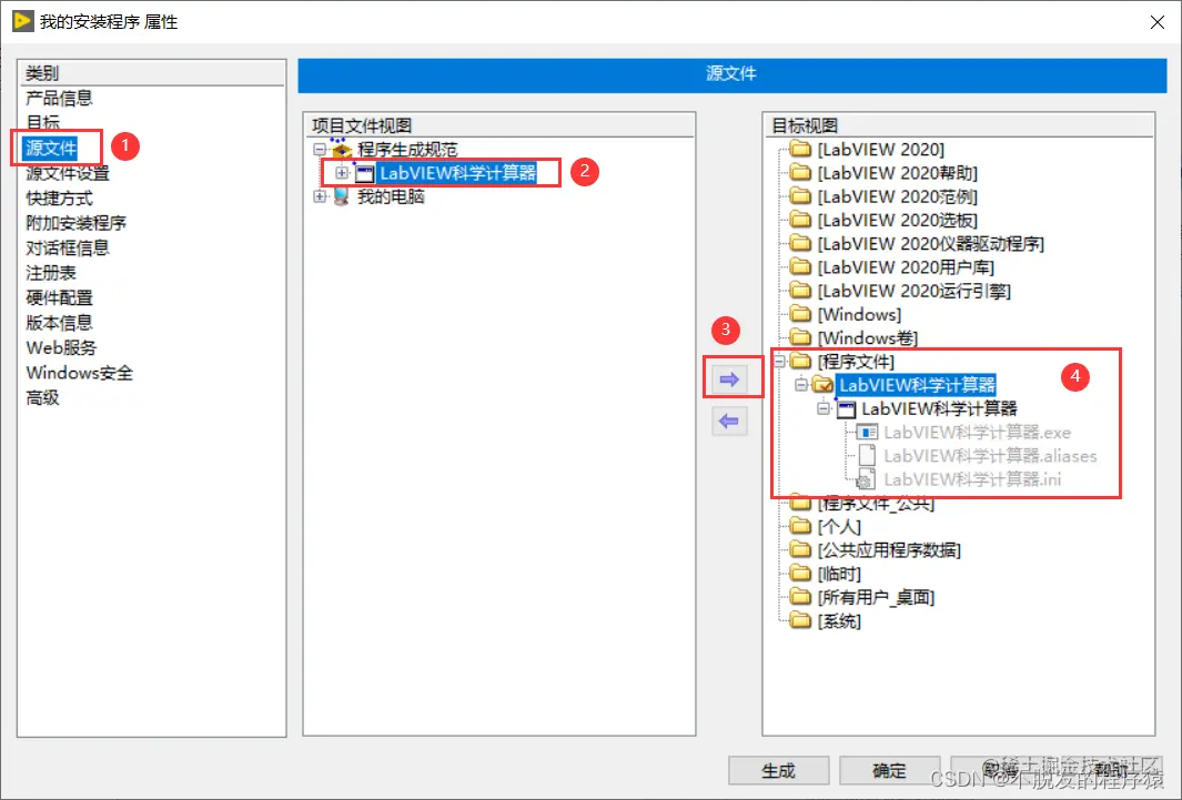 - 将生成的exe和一些用到的组件打包生成installer,即安装程序,然后在目标电脑上运行安装程序即可,这样安装完成后,之前生成的exe、LabVIEW运行引擎以及其他用到的工具包会自动安装到目标电脑上,这种方法移植程序比较简单,是最常用的方法。