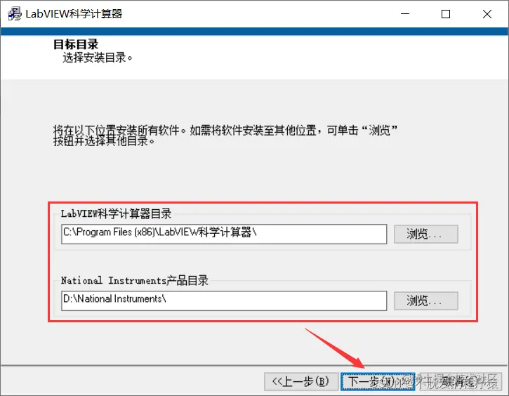 点击“LabVIEW科学计算器.exe”,选择安装路径,可以进行安装操作,如下图所示: