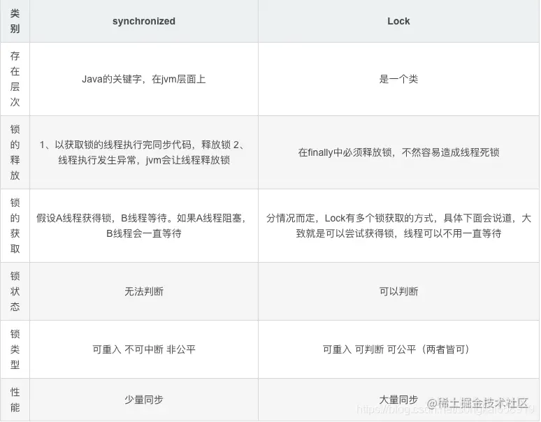 但与synchronized的明显区别是性能优势(伴随jvm的优化这个差距在减小)。同时Lock有更灵活的锁定方式,公平锁与不公平锁,而synchronized永远是公平的。