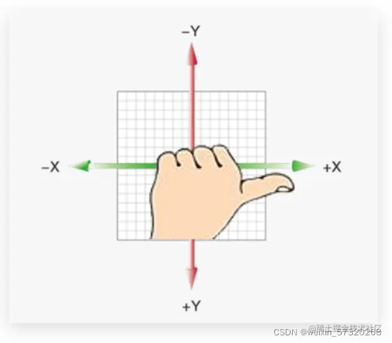 - 大拇指指向Y轴正向方(下), 则四指指向的方向是旋转的方向
