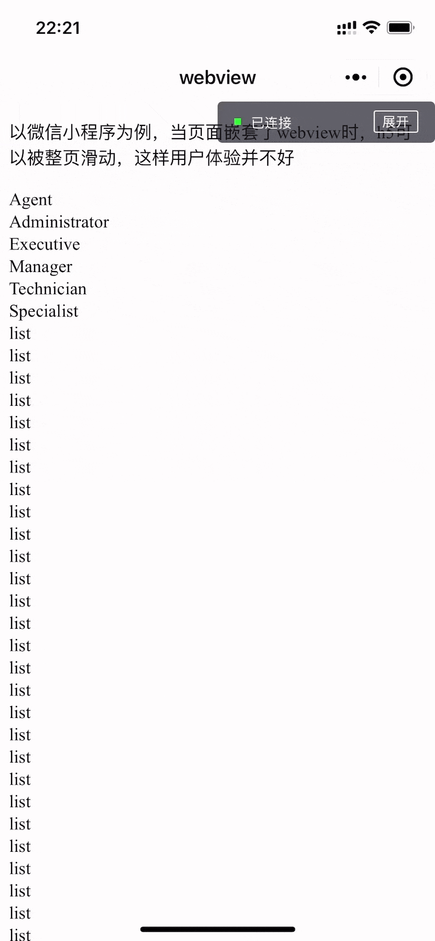 在小程序内插入 webview 页面,手指滑动页面的时候,没有触发网页内部的滚动,而是出现了整个html页面被下拉,而显示出“网页由xxx.com提供”的字样。