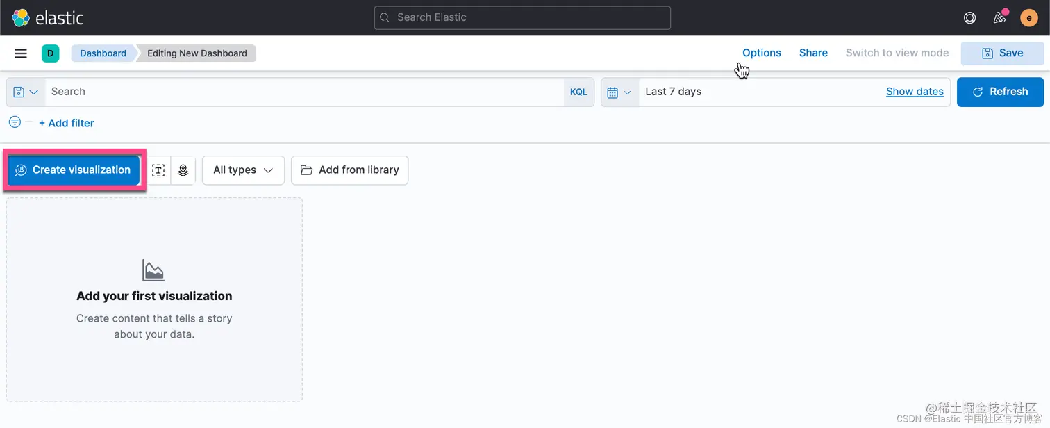 我们点击上面 Dashboard 中的 Create visualizations: