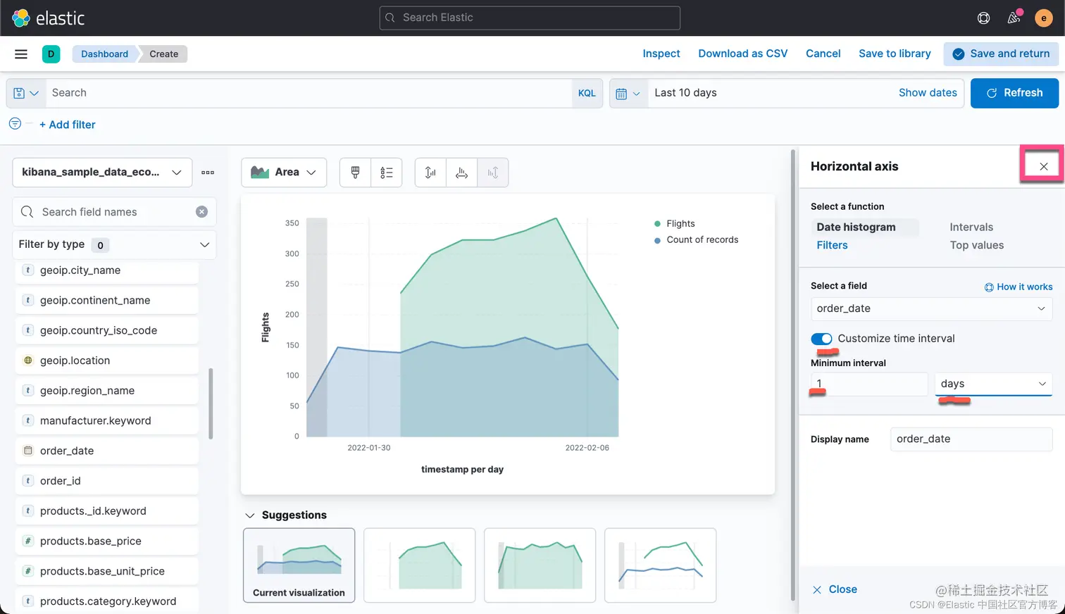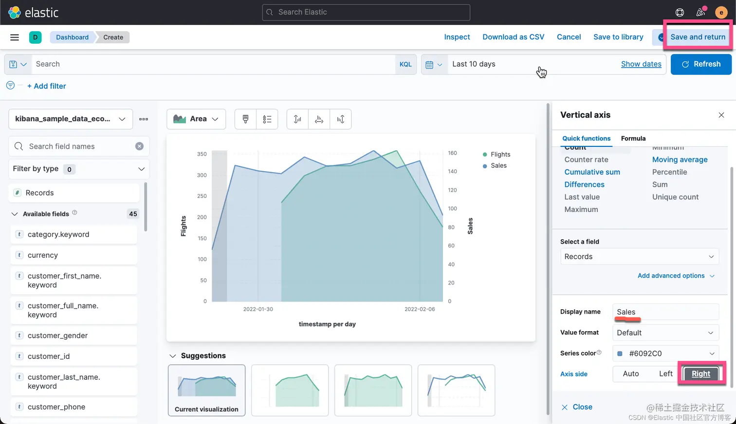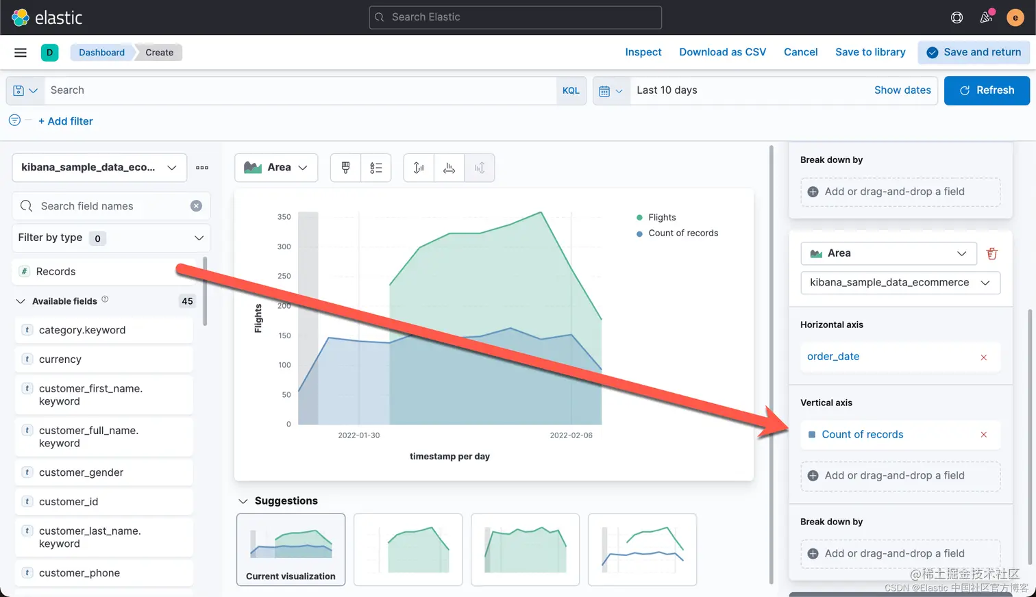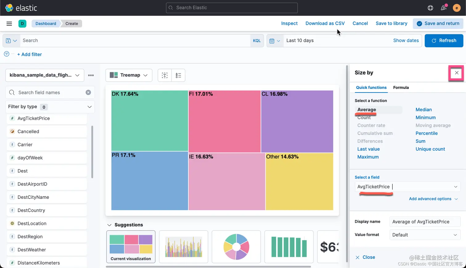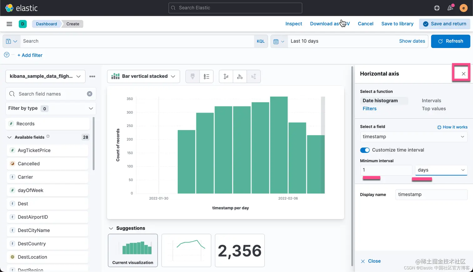 有时,你可能希望把你可视化中的数据进行导出。事实上,你甚至可以把你所有的 Lens 可视化里的数据都导出来并保存到 CSV 文件中。CSV 是一种以 , 分隔的值。你可以用你们所熟悉的工具进行打开并进行分析。