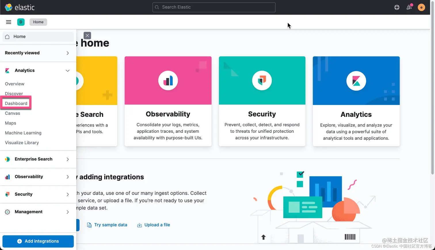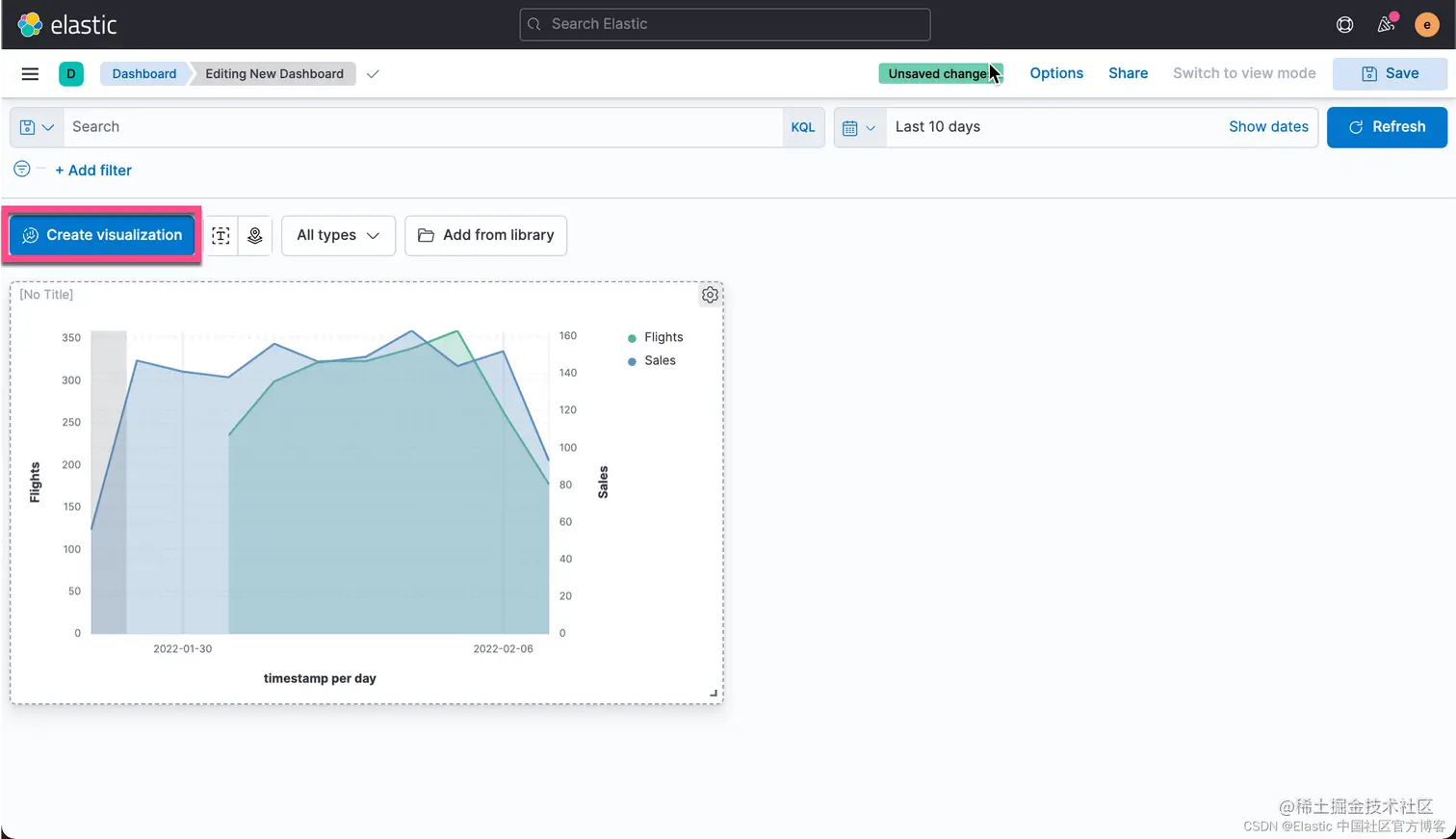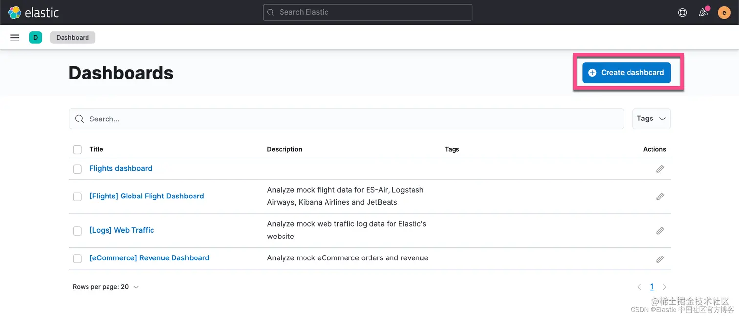 在上面的 Dashboard 中,我们再次点击 Create visualizations: