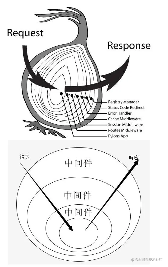 koa洋葱模型,我们的ctx上下文是洋葱心,洋葱皮是我们的中间件机制。
