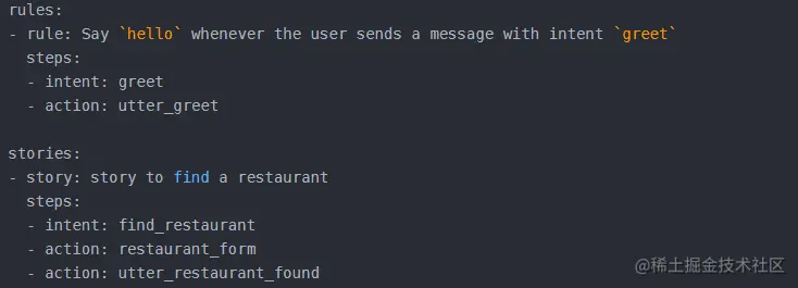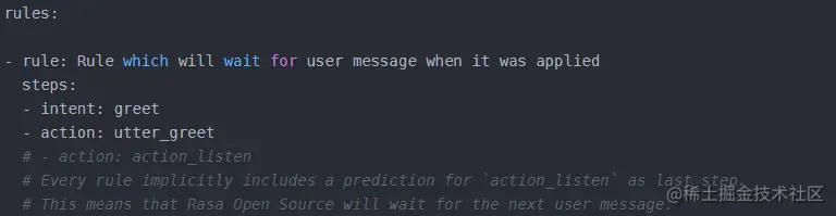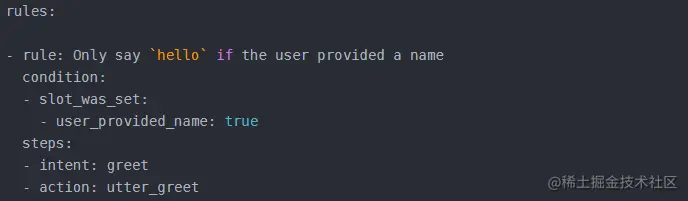 有关在Rasa助手中实现规则的其他示例,请参阅我们的规则示例机器人。