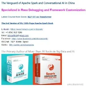 作者参与Gavin大咖主编出版Spark系列图书5本,清华大学出版社最新出版2本新书《Spark大数据商业实战三部曲:内核解密|商业案例|性能调优》第二版、《企业级AI技术内幕:深度学习框架开发+机器学习案例实战+Alluxio解密》,累计原创博客1475篇,涵盖大数据、人工智能、智能对话机器人等内容,博客阅读量达217万次。