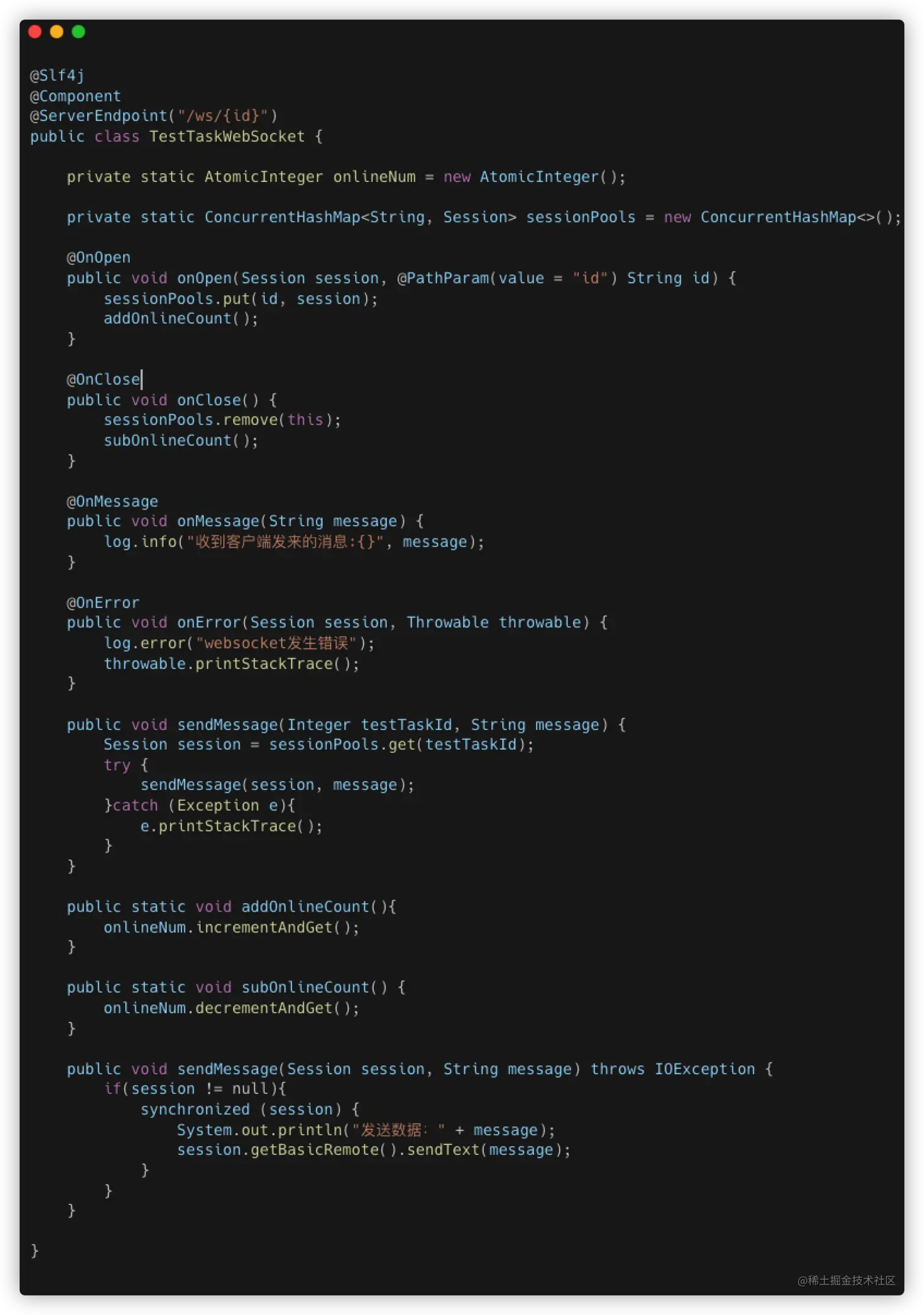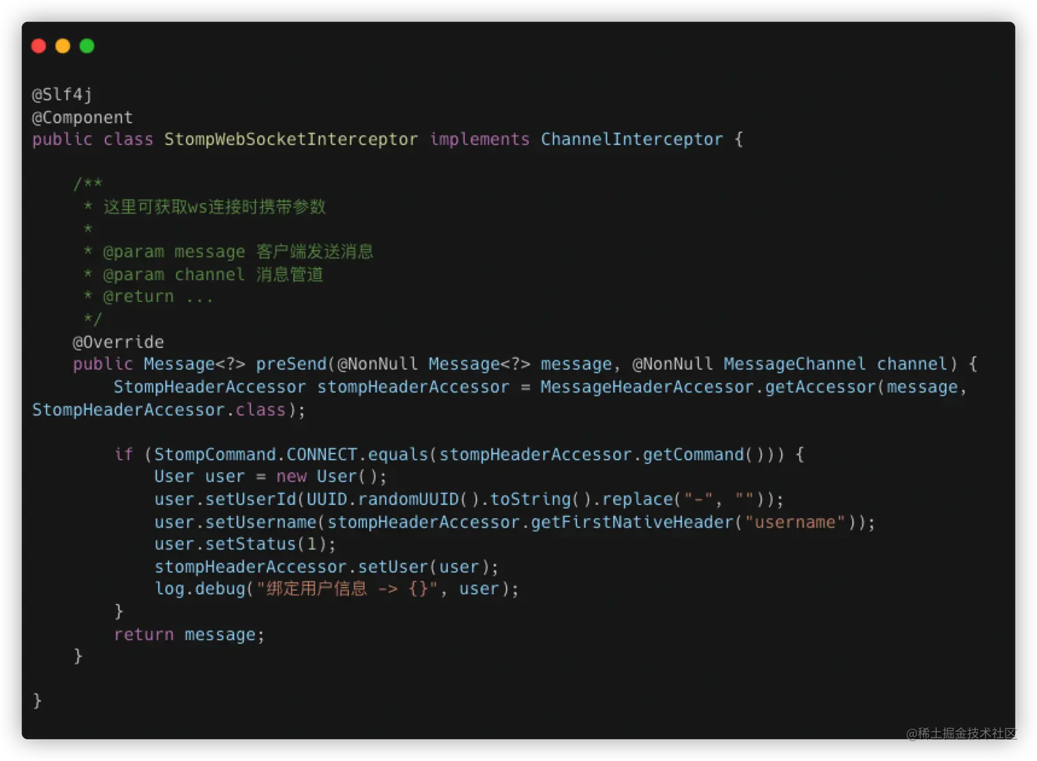 - clientInboudChannel:用于从 WebSocket 客户端接收消息