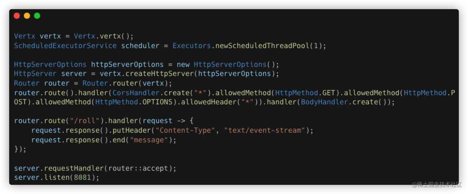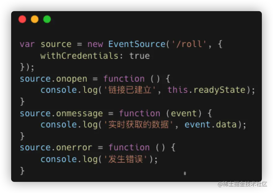这种方式和 websocket 有些类似,但是它只能单工通信,建立连接后,只能由服务端发往客户端,且占用一个连接,如果需要客户端向服务端通信,需要额外再打开一个连接