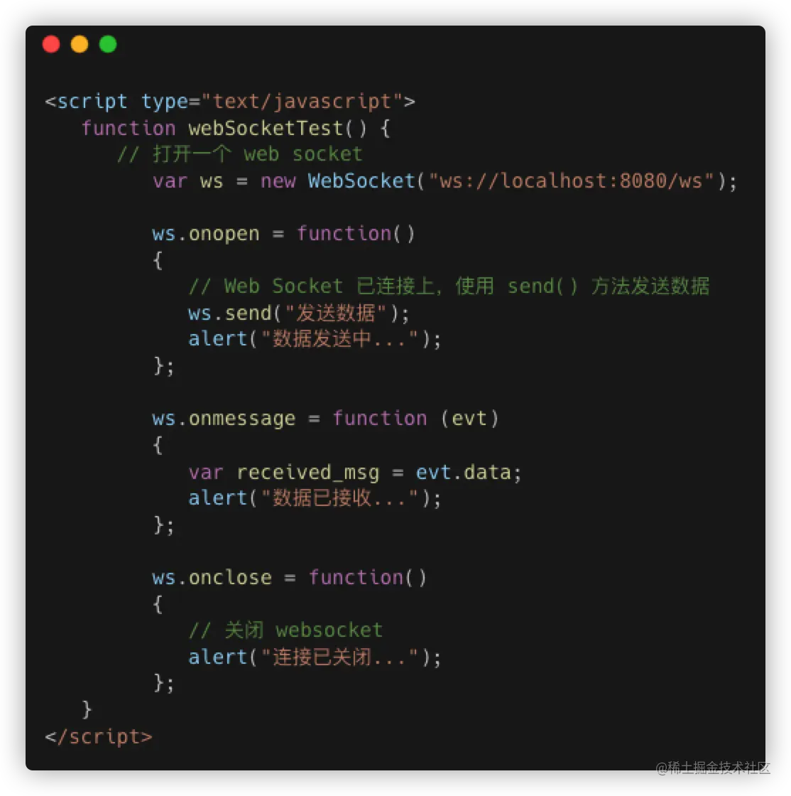 客户端实现 websocket 也十分简单,只需要以下API