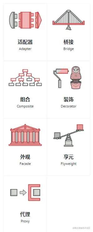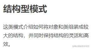 我自己的理解:这类设计模式用于“变着花样地借用花式创建的对象”,组合出一些类和对象之间的经典结构,用于解决特定场景下的经典问题,将类、对象的结构和使用解耦。