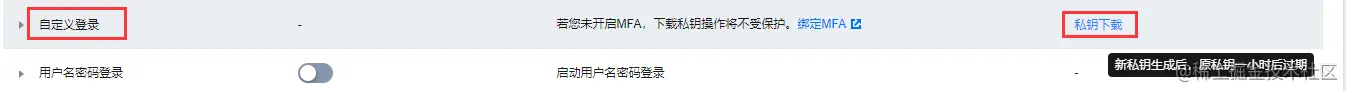 腾讯云环境配置:环境-登录授权:自定义登录->私钥下载(下载私钥文件)