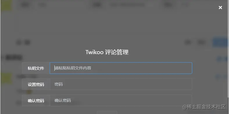 点击评论窗口的小齿轮图标,将私钥文件内容粘贴进去,随后设置管理员密码
