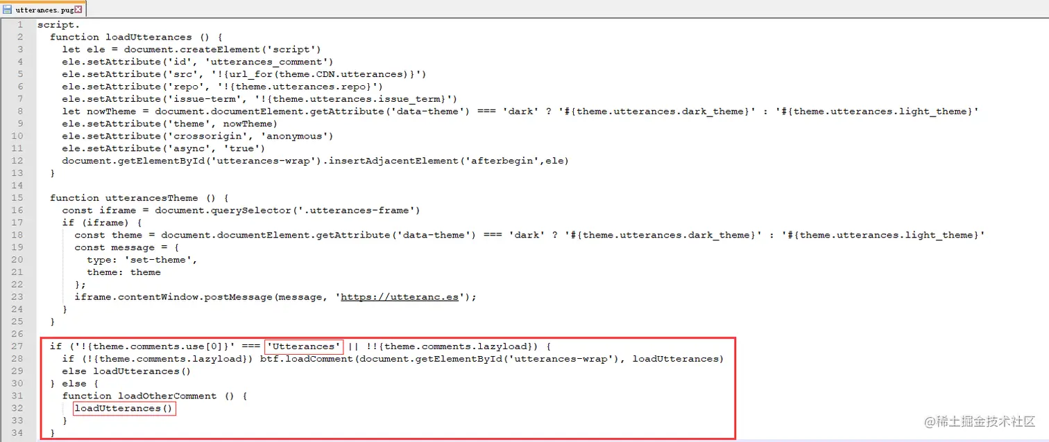 此处注意comments-use的参数需要指定正确,否则插件无法正常加载。例如在测试utterances的时候不小心拼错参数,发现插件始终无法加载,一开始以为是配置的问题,后续结合相关资源的提示,查看相应的源文件,发现问题所在(确认在配置中指定的参数是否为Utterances,如果指定的配置没有匹配到则不会加载该插件,也不会有任何的错误提示)