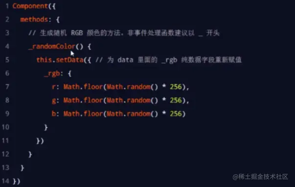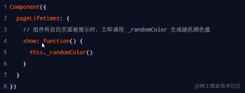例如:每当触发页面的show生命周期函数的时候,我们希望能够重新生成一个随机的 RGB 颜色值。