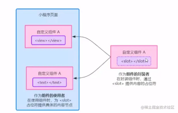 在使用带有多个插槽的自定义组件时,需要用 slot属性来将节点插入到不同的 中,示例代码如下: