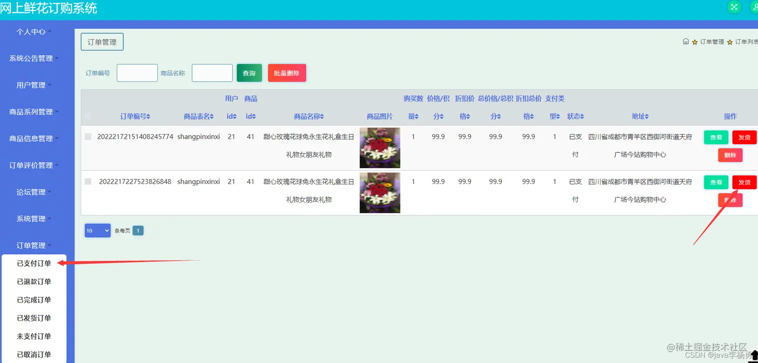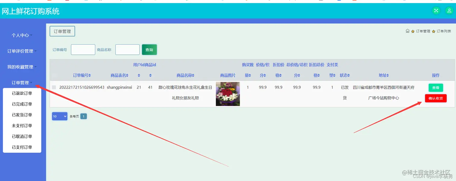 订单信息管理: