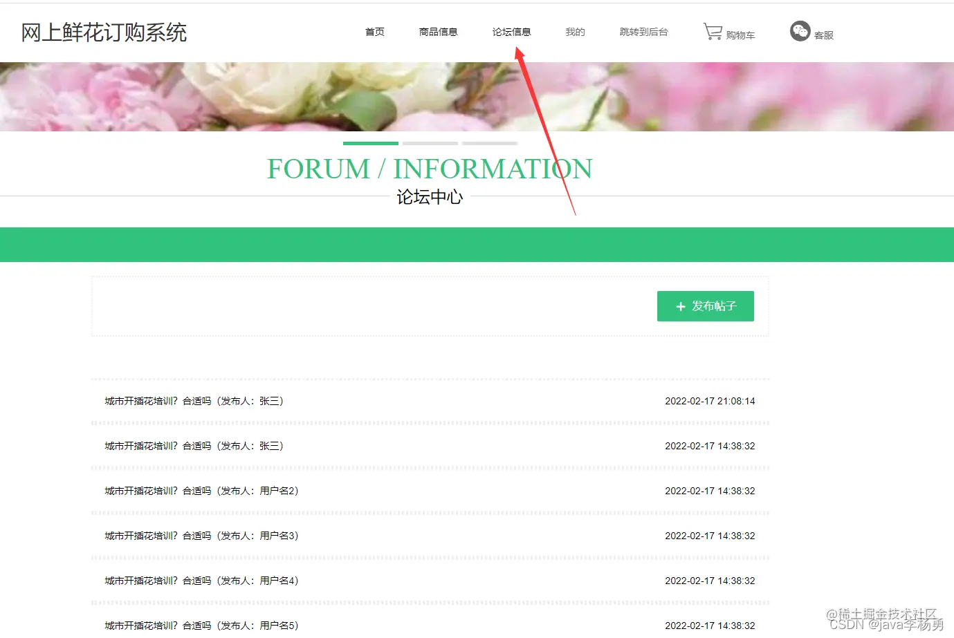 添加了论坛帖子系列功能:普通用户可以发布、可以对帖子进行交流讨论等