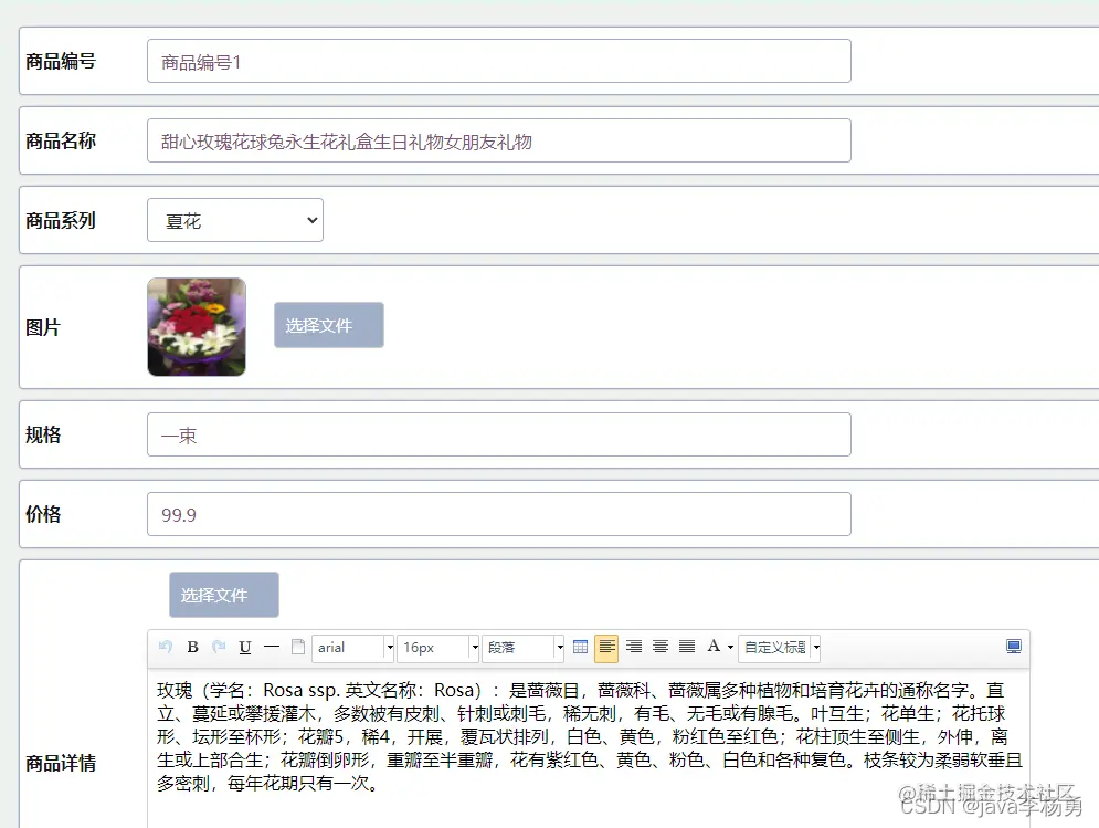 商品详情修改: