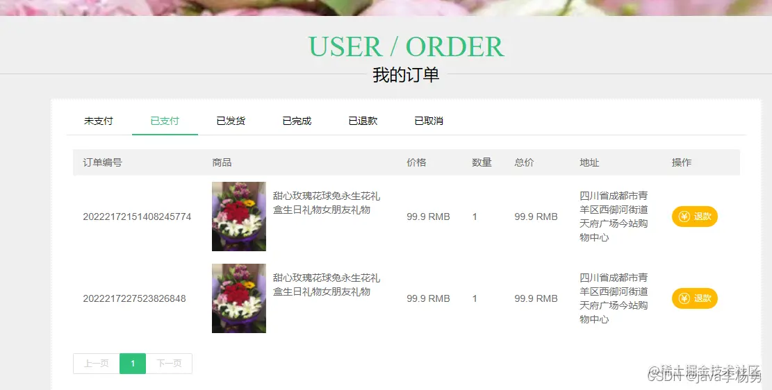 我的订单模块: