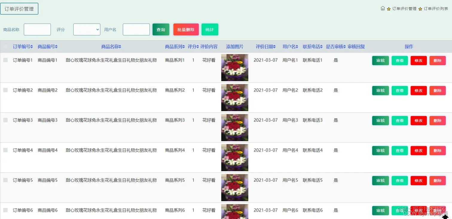商品评价管理: