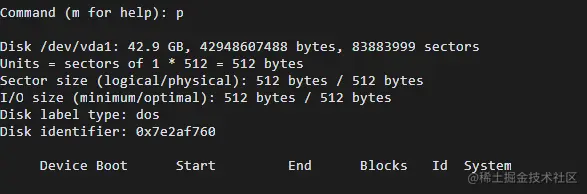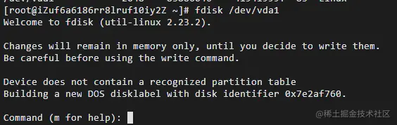 # 对/dev/vda1进行分区 根据提示操作 m查看帮助命令