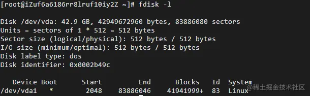 /dev/vda1p1 2048 83883998 41940975+ 83 Linux