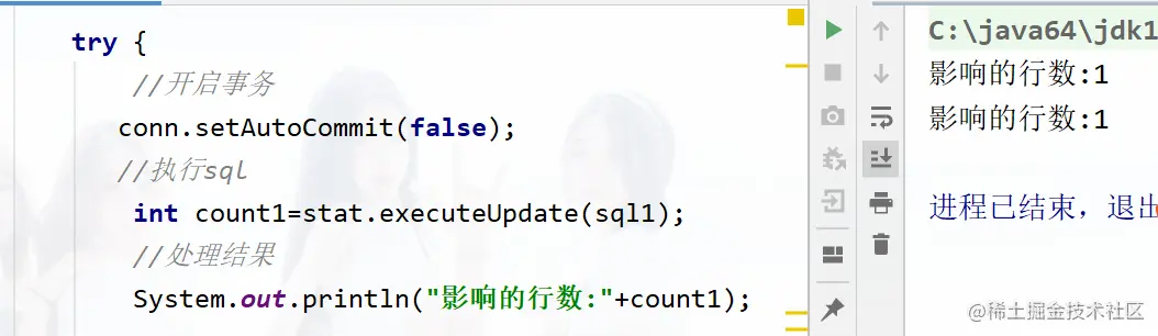 System.out.println("影响的行数:"+count1);