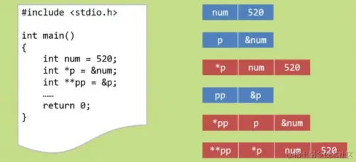 - 当然可以一直向下引用:指向指针的指针的指针的……