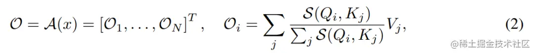 一般而言,我们可以选择任意相似度函数来计算注意力矩阵,如下公式(2)所示