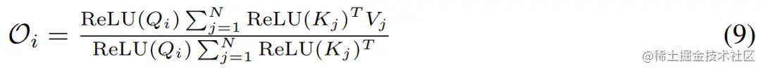 研究者还重新调整了点积(dot-product)的顺序,并得到了线性复杂度中所提注意力的公式(9)。
