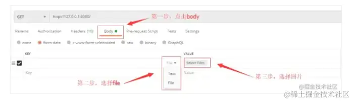 同样,DELETE、PUT、PATCH 请求,也都是这样的报文。底层解析这个报文的时候,并不关心是什么请求,所以说 GET请求也可以有body 体,也可以传 form-data 数据。有兴趣的可以拿 postman(我用的版本是 v7.30.1) 试一下,看看 GET 请求传图片,接口能不能收到图片文件: