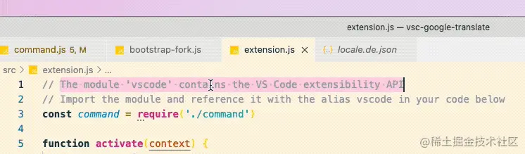 console.log('Congratulations, your extension "vsc-google-translate" is now active!');