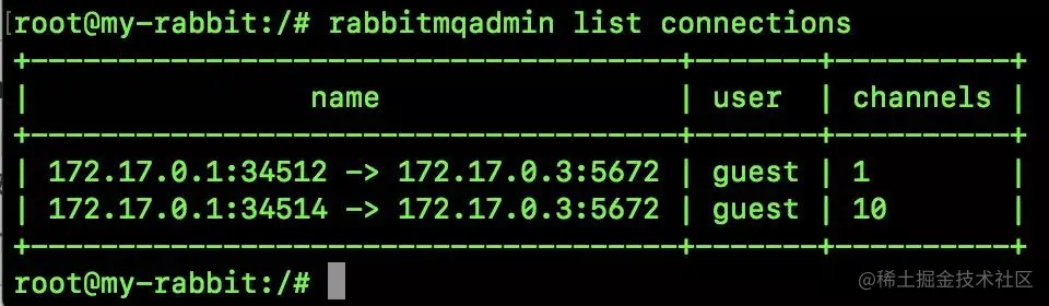 rabbitmqadmin list connections