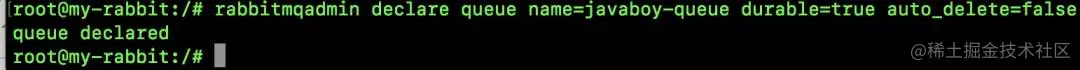 rabbitmqadmin declare queue name=javaboy-queue durable=true auto_delete=false