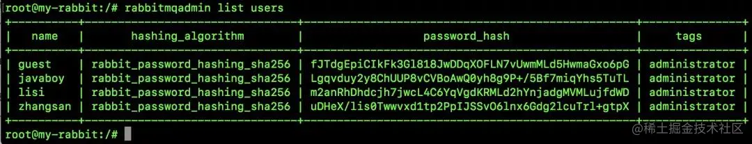 rabbitmqadmin list users
