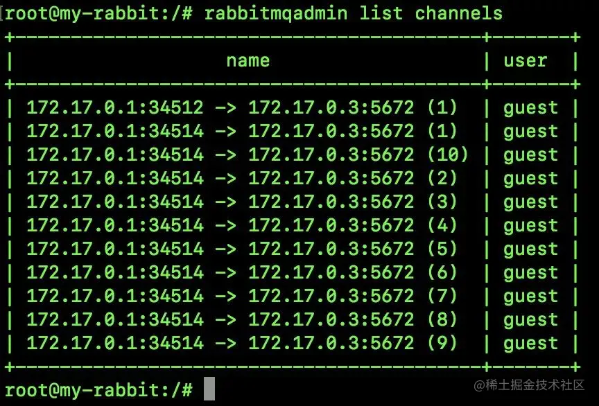 rabbitmqadmin list channels