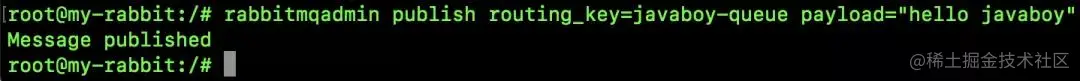 rabbitmqadmin publish routing_key=javaboy-queue payload="hello javaboy"