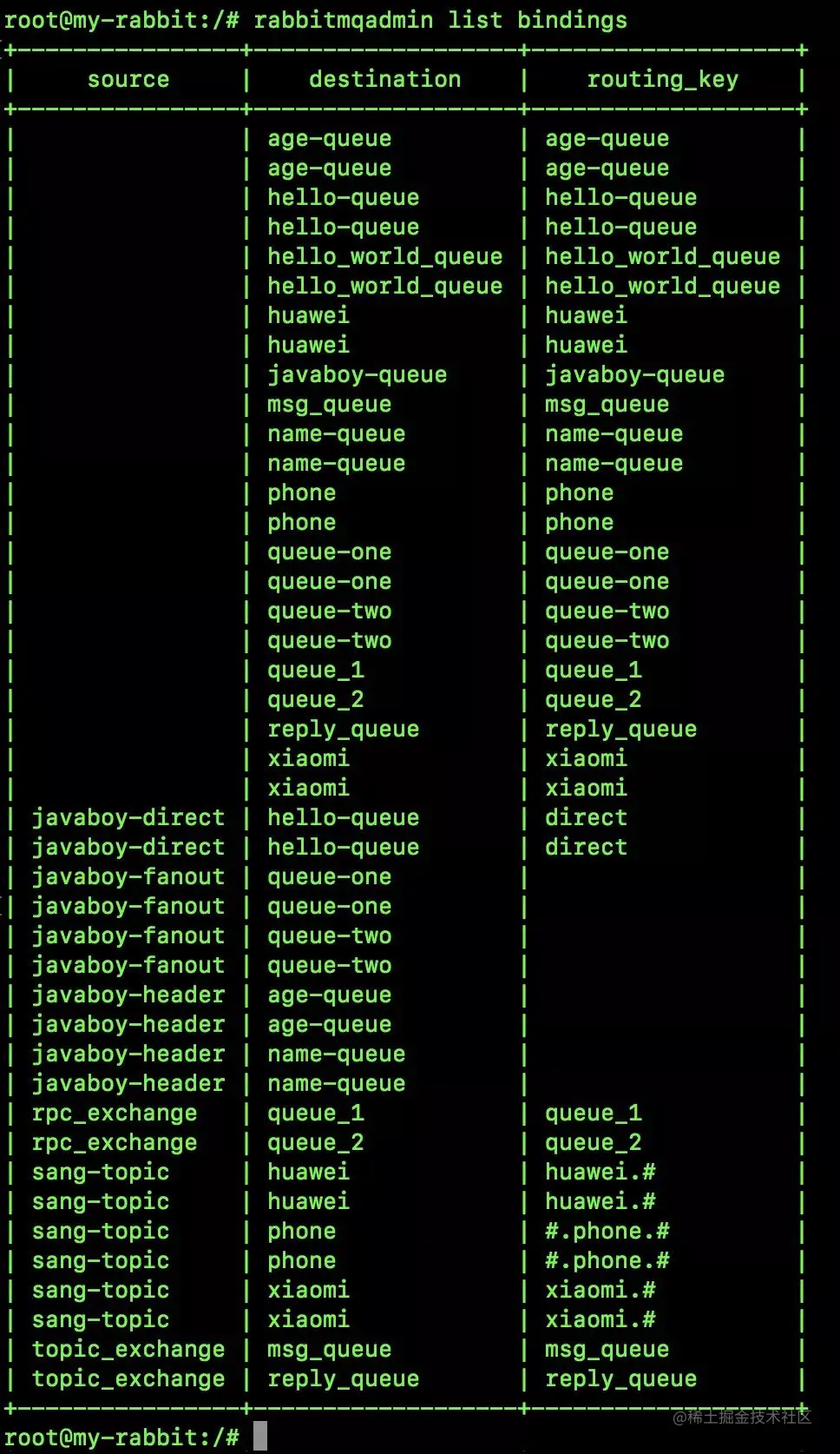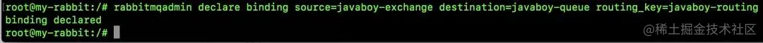 rabbitmqadmin declare binding source=javaboy-exchange destination=javaboy-queue routing_key=javaboy-routing