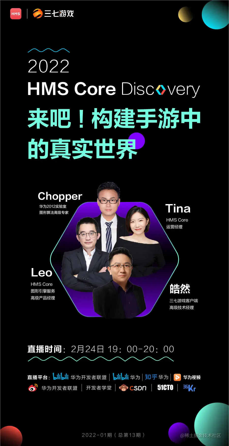 HMS Core Discovery第13期直播将在2022年2月24日19:00开播!本期直播以“来吧!构建手游中的真实世界”为主题,分享当下手游画质提升背后的技术支撑以及发展趋势;本期直播还邀请了国内著名游戏开发商 – 三七游戏,共同为大家揭秘图形渲染技术在手游上的应用。欢迎大家准时进入直播间,与专家们一同探讨HMS Core图形引擎服务背后的技术。