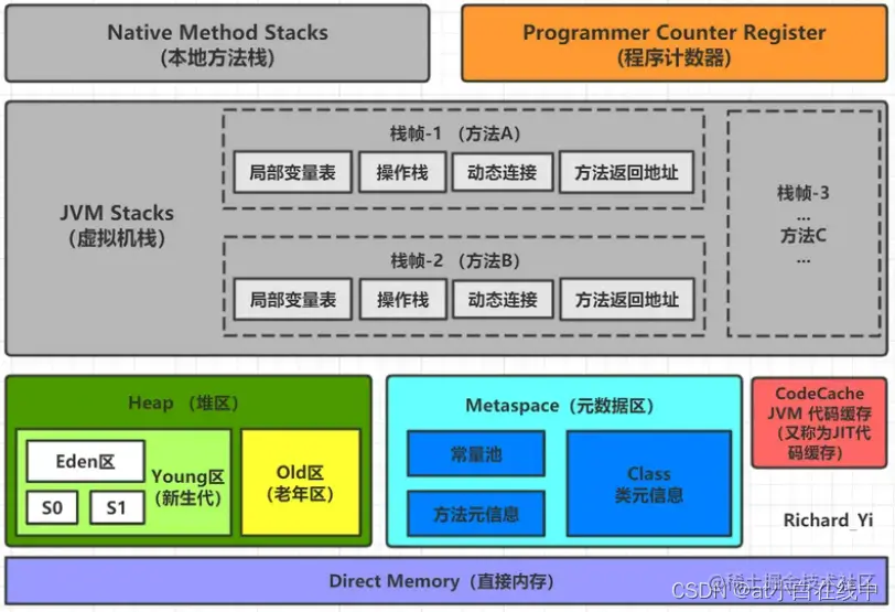 上图描述了当前比较经典的JVM内存布局。(堆区画小了2333,按理来说应该是最大的区域)
